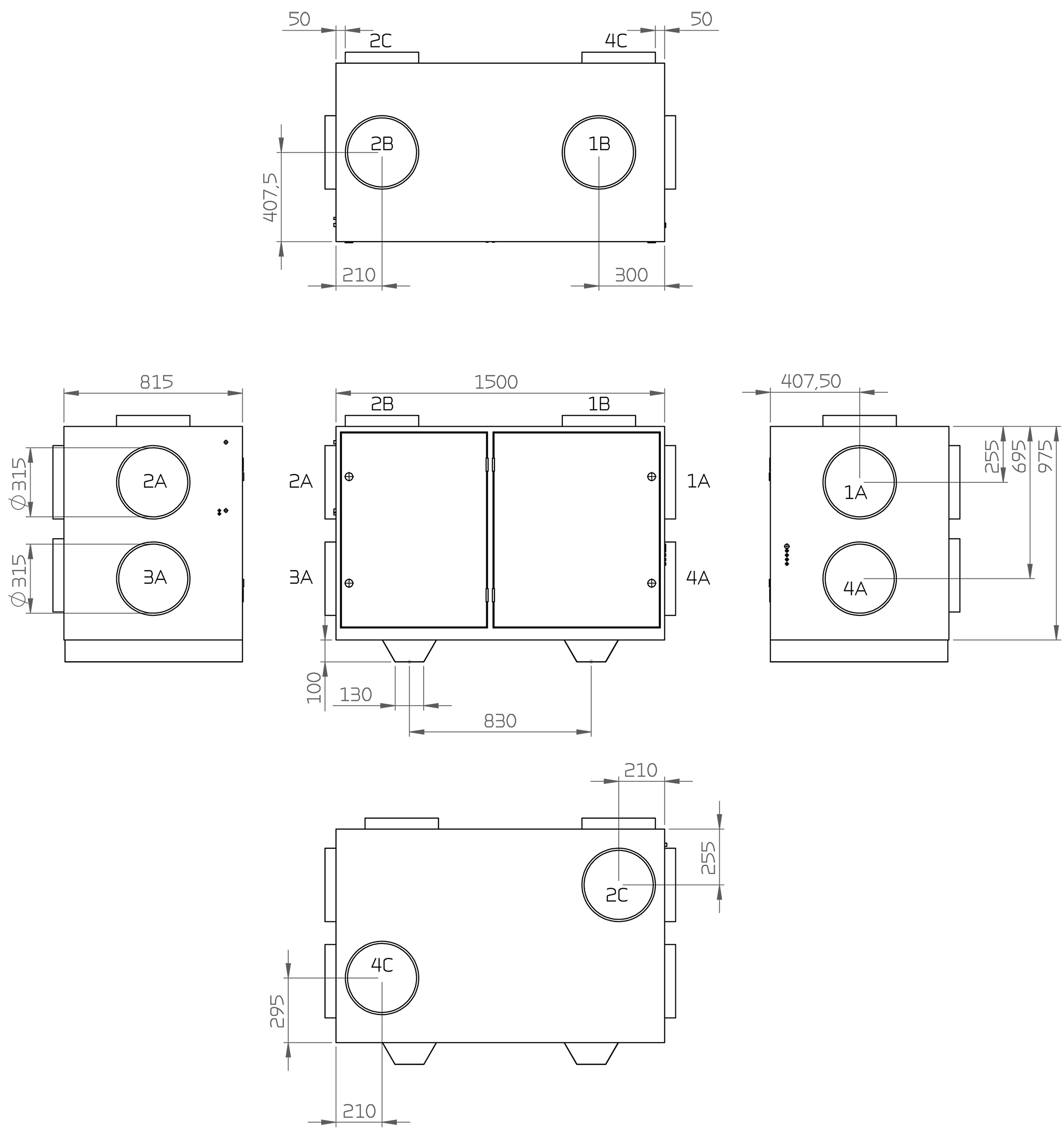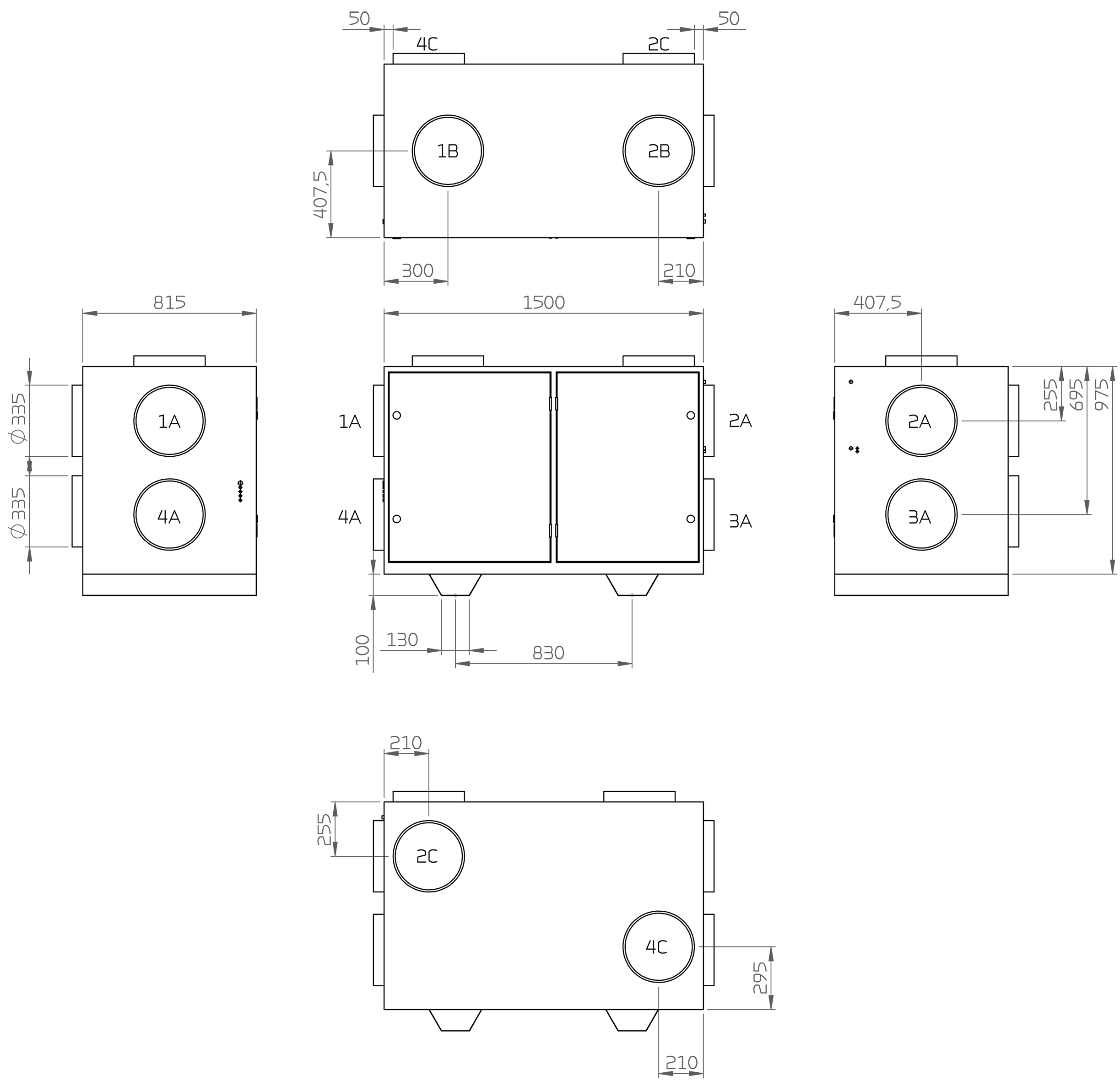 Die Konstruktion der VR-Serie mit selbsttragendem Rahmen und 50 mm Isolierung sorgt für ein robustes und kompaktes Gerät, das sich problemlos in Technikräumen mit begrenztem Platzangebot aufstellen lässt. Flexible Stutzenpositionen und universelle Anschluss-möglichkeiten erleichtern die Anpassung der Installation an das Gebäude.