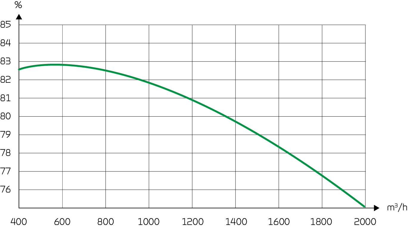 Elektroeffizienz nach EN 13053 gilt für Standardgeräte mit ISO ePM10 >60% (M5) und ISO ePM1 50% (F7) Filtern und ohne Heizregister.