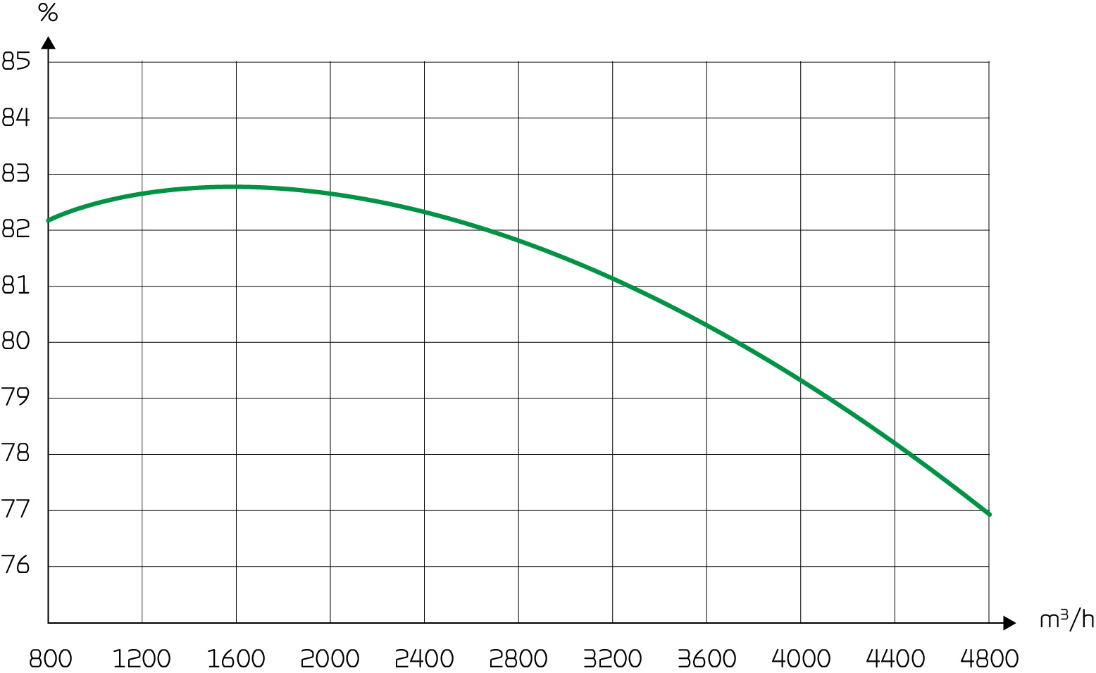 TemperaturvirkningsgradTemperturvirkningsgrad for roterende veksler i henhold til EN308 (tør). |