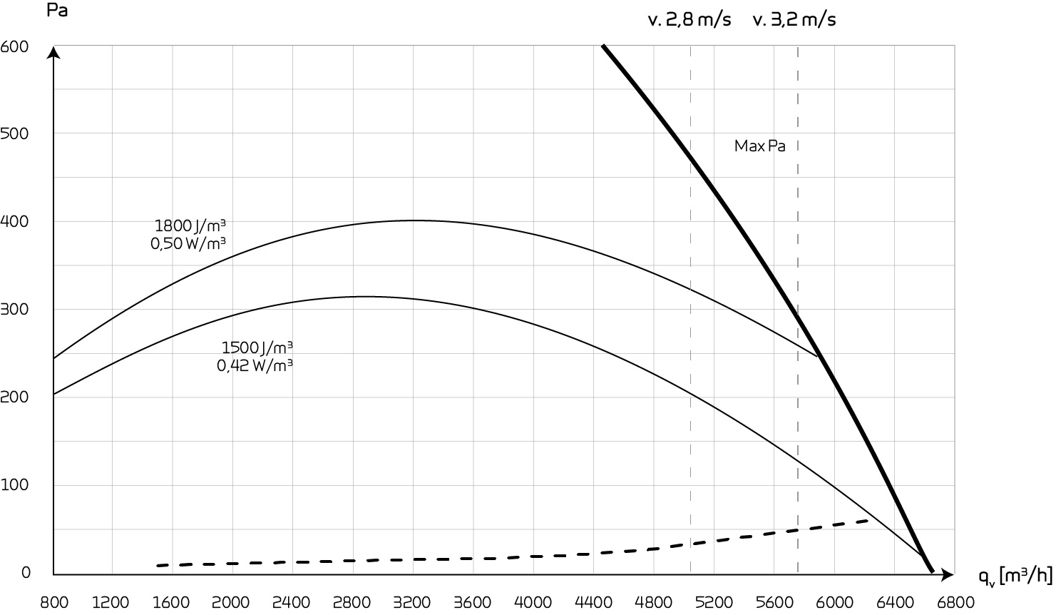 Leistung (Kondensationstauscher)Die folgenden Daten werden auf Basis eines Kondensationstauschers berechnet. Leistung eines Standardgerätes als Funktion von qv og Pt, ext. Elektroeffizienz nach EN 13053 gilt für Standardgeräte mit ISO ePM10 >60% (M5) und ISO ePM1 50% (F7) Filtern und ohne Heizregister. * Die Luftgeschwindigkeit über der Verdampferoberfläche wird bei Meter pro Sekunde gemessen. Achtung! SFP-Werte werden gemessen und als Gesamtwert für beide Ventilatoren angegeben. |