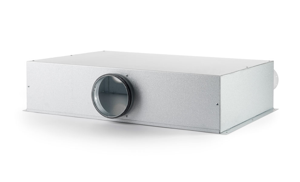 Die Verbindung zwischen dem Lüftungsgerät und der Verteilerbox wird mit Schalldämpfer, z.B. Schallflex-Schläuche, etabliert, um zu vermeiden, dass Geräusche von den Ventilatoren des Lüftungsgeräts sich durch die Luft auf die Wohnung übertragen.